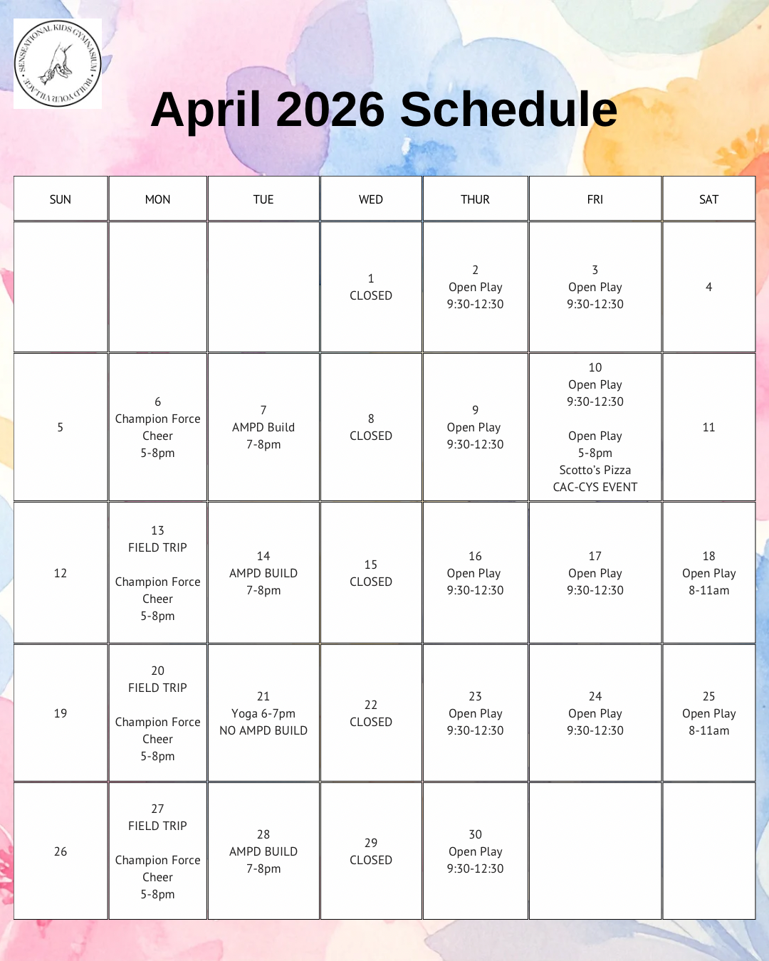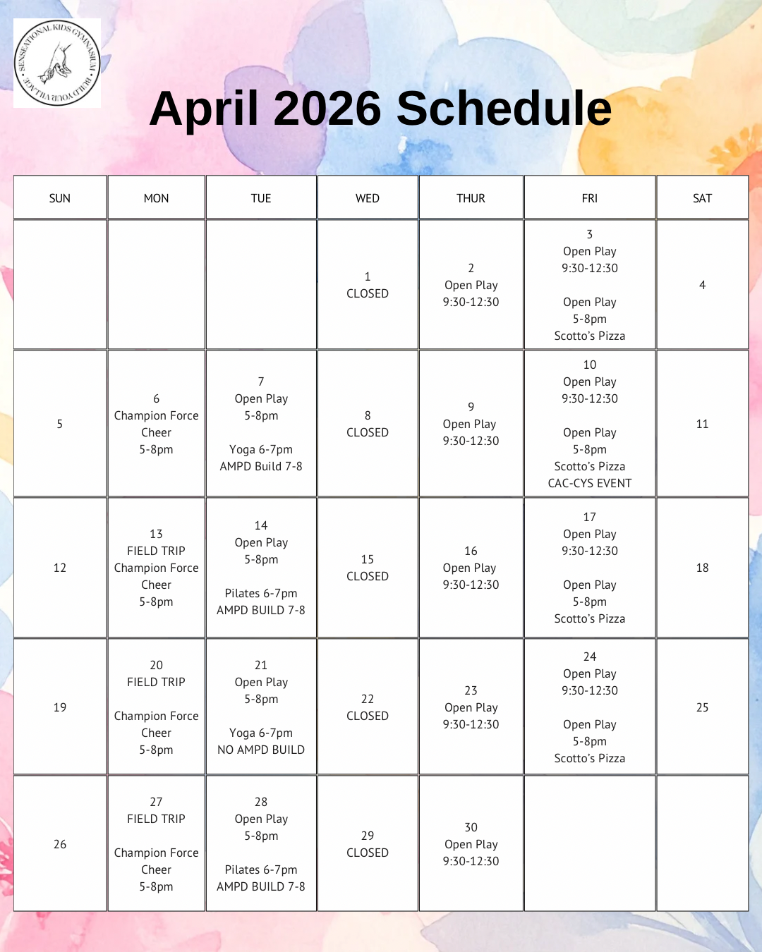 Children learn the best through hands on play. While spending time in our gym, your children will learn how to safely navigate their bodies in space, communicate effectively with others, follow directions, problem solve, and use social skills.