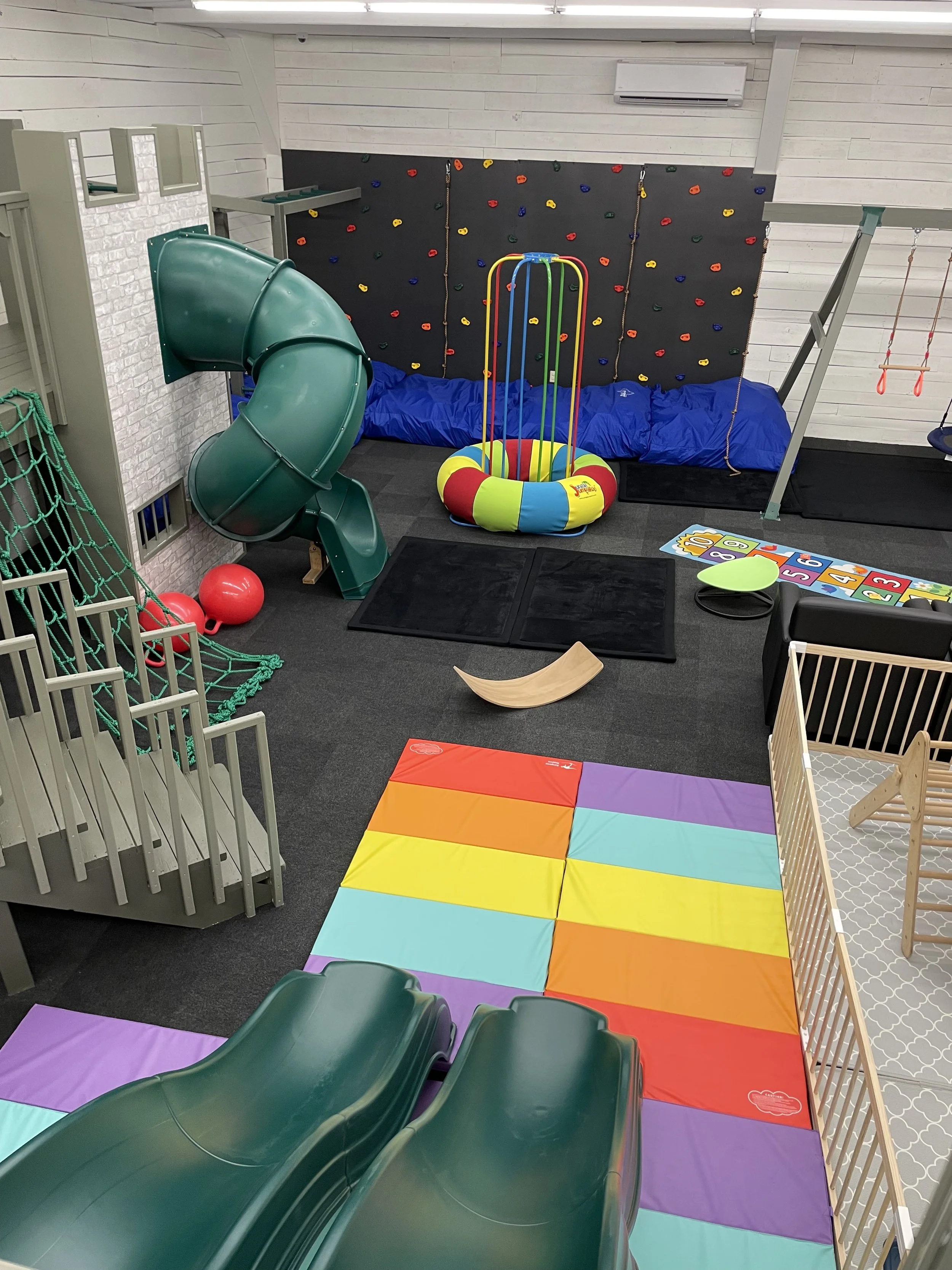 Our gym offers a wide variety of sensory experiences for the sensory seekers of our community. Our equipment is purchased with the full sensory experience in mind!
